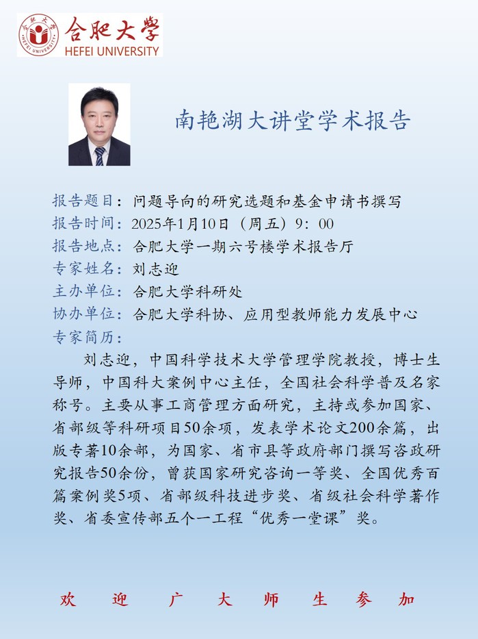 【南艷湖大講堂】問題導(dǎo)向的研究選題和基金申請書撰寫