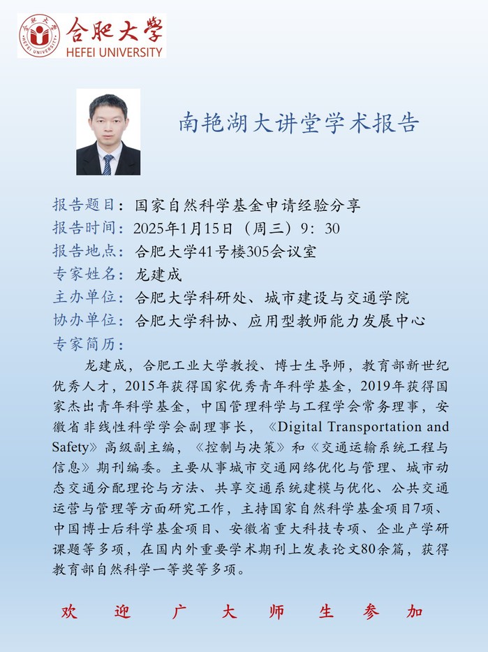 【南艷湖大講堂】國家自然科學基金申請經(jīng)驗分享