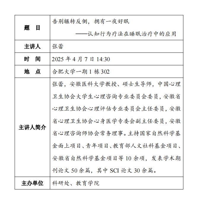 【善思講壇】告別輾轉反側,擁有一夜好眠——認知行為療法在睡眠治療中的應用