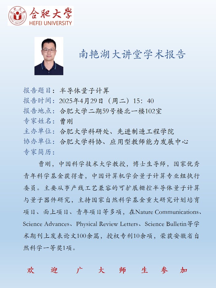 【南艷湖大講堂】半導(dǎo)體量子計算