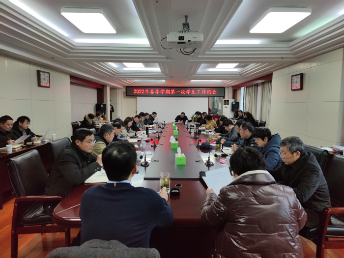 為部署常態(tài)化疫情防控下開學事宜,統(tǒng)籌年后學生工作安排,學校于2月17日上午在行政樓第八會議室召開2022年春季學期第一次學生工作例會。校黨委副書記劉建中出席,各職能部門負責人、各二級學院黨委書記、副書記參加,會議由校黨委委員、學生處處長朱濤主持。