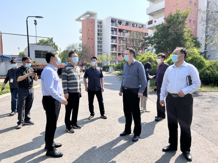 4月11日下午,經(jīng)開區(qū)黨工委委員、管委會副主任王家和來校督查疫情防控工作,校黨委副書記劉建中和辦公室、學生處、保衛(wèi)處、公管處、后勤集團負責人陪同。