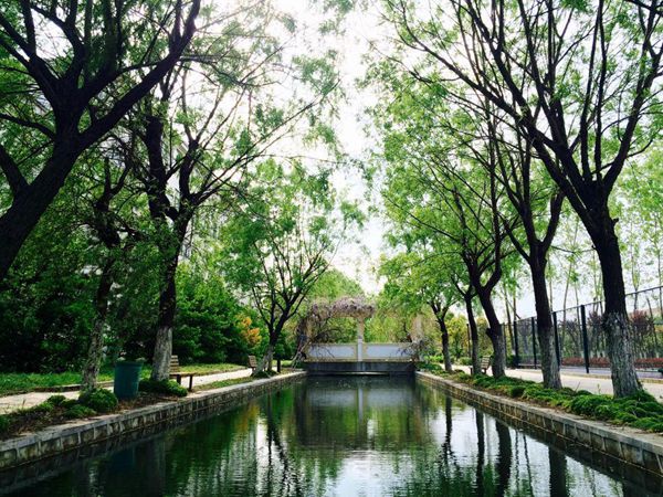 繼續(xù)隨性游走,一排排茂密的香樟樹陳列在路的兩旁,幽幽的清香伴隨著清風(fēng)拂來。一座白色的小洋樓豁然出現(xiàn)在眼前,原來這是我校韓國(guó)留學(xué)生學(xué)習(xí)上課的地方。隨后漫步至一水池處,我校第八屆花燈節(jié)就在此處舉辦,當(dāng)時(shí),地?zé)簟⑺疅?、繡球燈等百余盞花燈被擺放在水池兩側(cè)。搖曳的燭光在朦朧月光的映照下更顯美麗?;顒?dòng)期間,兩樹之間拴上了紅繩,紅繩上掛滿了同學(xué)們書下的心愿,譬如:“希望今夜遇見女神”,“四級(jí)必過”等?!盎艄?jié)”那天,這里夜晚的寧靜悄悄溜走了,只見這里人山人海,熱鬧非凡。
