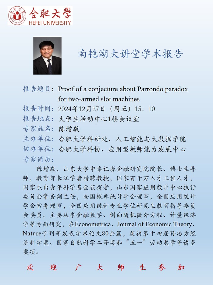 【南艷湖大講堂】Proof of a conjecture about Parrondo paradox for two-armed slot machines