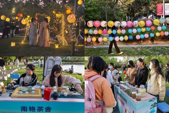 青衿漢宣社學(xué)子廣袖飄飄,自三期校園款款而行,漢服游園為活動拉開序幕。藝術(shù)樓前,一曲《高山流水》典雅古樸,《霓裳羽衣》演繹傳統(tǒng)與現(xiàn)代的完美交融。一期湖畔邊,電子愛好者協(xié)會流光溢彩的電子花燈引人駐足;南艷茶舍的學(xué)子們碾茶煮茗,體味“晴窗細乳戲分茶”的雅致。生物創(chuàng)新之光協(xié)會的佳釀、靈心居手工社的巧手生花、ART手繪協(xié)會的妙筆丹青,無不展現(xiàn)著傳統(tǒng)文化的當代活力。月上柳梢時,猜燈謎、放河燈等傳統(tǒng)活動將氣氛推向高潮。盞盞花燈隨波遠去,載著學(xué)子們的美好祈愿;笑語歡聲間,沙包投擲、尋寶探險等活動更添趣味。此次花燈節(jié)不僅豐富了校園文化生活,更讓傳統(tǒng)文化浸潤學(xué)生的心田。