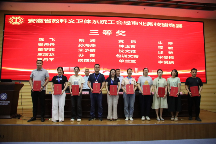 6月13日,安徽省教科文衛(wèi)體系統(tǒng)工會(huì)經(jīng)審業(yè)務(wù)技能競(jìng)賽舉辦,來(lái)自全省教科文衛(wèi)體系統(tǒng)工會(huì)的近60名經(jīng)審業(yè)務(wù)骨干參與角逐,評(píng)選出一等獎(jiǎng)5名、二等獎(jiǎng)10名、三等獎(jiǎng)20名。我校教職工包訓(xùn)文菁獲三等獎(jiǎng)。
