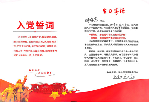 一人過生日,集體受教育。6月24日,外國語學(xué)院為入黨時(shí)間在6至7月的師生黨員過集體“政治生日”。院黨委書記吳孔寶為2位教師黨員和14位學(xué)生黨員送上“政治生日”賀卡,幫黨員佩戴黨員徽章,并開展談心談話,引導(dǎo)黨員堅(jiān)定信仰、嚴(yán)守紀(jì)律、永葆初心、砥礪前行。