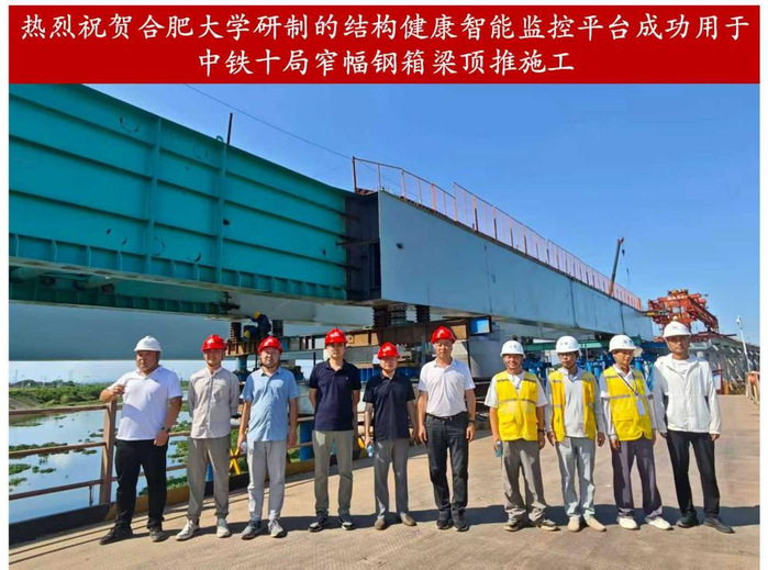 本項目研究得到了上海鐵路局集團(tuán)東華地鐵安徽公司、中鐵十局集團(tuán)四公司和中鐵隧道洛陽監(jiān)理有限公司等單位的大力支持,為我校青年骨干教師提供了豐富的科研資源和實踐場景,同時對研究生培養(yǎng)起到了積極促進(jìn)作用。本次跨度60米窄幅鋼箱梁頂推施工,是合肥大學(xué)結(jié)構(gòu)健康智能監(jiān)控系統(tǒng)平臺首次成功應(yīng)用于實際工程項目,也為未來服務(wù)于軌道交通、橋隧及類似復(fù)雜工程施工監(jiān)控提供了堅實的基礎(chǔ)。