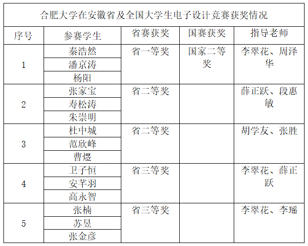 8月5日至7日,全國(guó)大學(xué)生電子設(shè)計(jì)競(jìng)賽安徽賽區(qū)現(xiàn)場(chǎng)測(cè)評(píng)活動(dòng)在安徽師范大學(xué)舉辦,我校7支參賽隊(duì)伍榮獲省一等獎(jiǎng)1項(xiàng)、省二等獎(jiǎng)2項(xiàng)和省三等獎(jiǎng)2項(xiàng)。省一等獎(jiǎng)團(tuán)隊(duì)在8月10日的國(guó)賽評(píng)測(cè)中獲國(guó)家二等獎(jiǎng)。