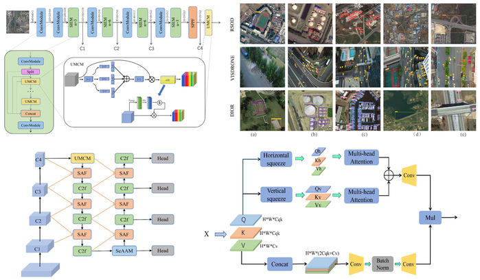 在遙感小目標(biāo)檢測(cè)方向,團(tuán)隊(duì)針對(duì)遙感影像復(fù)雜背景干擾和小目標(biāo)檢測(cè)難題,提出軸壓縮與多路徑尺度自適應(yīng)融合網(wǎng)絡(luò)(AMSFNet)。該網(wǎng)絡(luò)設(shè)計(jì)單向多尺度耦合模塊增強(qiáng)小目標(biāo)特征提取能力,構(gòu)建軸壓縮增強(qiáng)注意力模塊聚合全局與局部信息以降低背景噪聲干擾,通過多路徑尺度自適應(yīng)融合方法實(shí)現(xiàn)大小目標(biāo)檢測(cè)平衡。陳巖博士為第一作者,王曉峰教授為通訊作者,合肥大學(xué)人工智能與大數(shù)據(jù)學(xué)院為第一完成單位。(論文標(biāo)題:Axis-Squeeze and Multirouting Scale-Adaptive Fusion Network for Remote Sensing Images Object Detection,引用鏈接:https://ieeexplore.ieee.org/document/11121344)