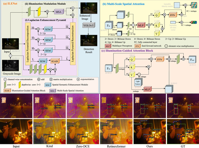 在低光環(huán)境目標(biāo)檢測(cè)方向,團(tuán)隊(duì)提出光照調(diào)制拉普拉斯金字塔增強(qiáng)網(wǎng)絡(luò)(ILENet)。該網(wǎng)絡(luò)設(shè)計(jì) LEP  IMM 兩大關(guān)鍵組件,LEP 優(yōu)化低光圖像多頻率信息以提亮度、IMM 生成語(yǔ)義校正參數(shù)以優(yōu)圖像,且與 YOLO 檢測(cè)器集成形成新框架,采用聯(lián)合訓(xùn)練平衡增強(qiáng)與檢測(cè)任務(wù),在低光數(shù)據(jù)集上達(dá) SOTA(準(zhǔn)確率 78.5%),其有效性亦經(jīng)低光語(yǔ)義分割任務(wù)驗(yàn)證。王曉峰教授為第一作者,鄒樂教授為通訊作者,合肥大學(xué)人工智能與大數(shù)據(jù)學(xué)院為第一完成單位。(論文標(biāo)題:ILENet: Illumination-Modulated Laplacian-Pyramid Enhancement Network for low-light object detection,引用鏈接:https://www.sciencedirect.com/science/article/pii/S0957417425001265)