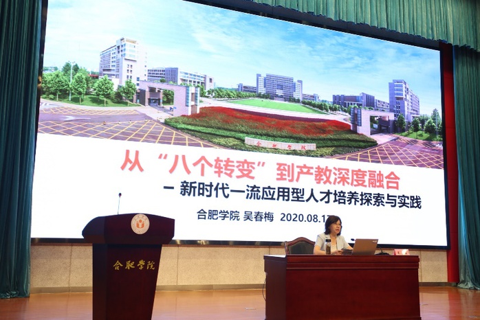 合肥學(xué)院校長(zhǎng)吳春梅首先作了《從“八個(gè)轉(zhuǎn)變”到產(chǎn)教深度融合——新時(shí)代一流應(yīng)用型人才培養(yǎng)探索與實(shí)踐》的報(bào)告。她強(qiáng)調(diào),應(yīng)用型高校的首要任務(wù)是培養(yǎng)應(yīng)用型人才,要堅(jiān)持將深化產(chǎn)教融合、校企合作作為學(xué)校發(fā)展、人才培養(yǎng)的動(dòng)力之源和目標(biāo)所向,在地方產(chǎn)業(yè)集群建設(shè)和園區(qū)、企業(yè)發(fā)展中,找準(zhǔn)并不斷夯實(shí)學(xué)校的辦學(xué)定位和發(fā)展方位,著力提升應(yīng)用型高校在地方經(jīng)濟(jì)社會(huì)發(fā)展中的參與度和貢獻(xiàn)率。