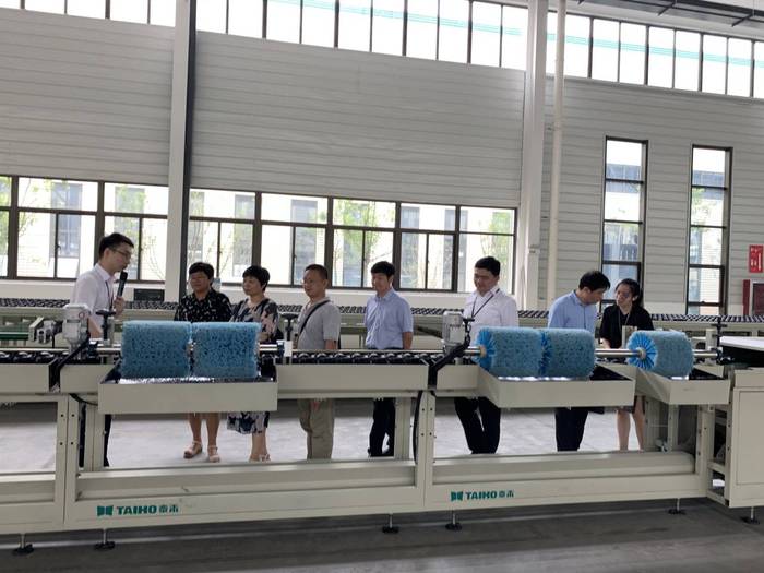 我校一行人先后參觀了公司在智能檢測分選設備、智能化倉儲系統、工業(yè)機器人等產品的生產制造及設備的現場演示,并認真聽取了公司自成立以來的發(fā)展歷程、市場銷售情況以及科技研發(fā)等方面情況。