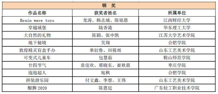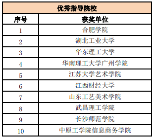 我校設計學院學生宛楓在趙靜老師指導下獲得最具商業(yè)價值獎1項,銅獎1項,吳翔在高京老師指導下獲得銅獎1項,譚淼在趙靜老師指導下獲得優(yōu)秀獎1項,覃柳生在高京老師指導下獲得優(yōu)秀獎1項,獲得鼓勵獎3項。合肥學院獲優(yōu)秀指導院校獎和優(yōu)秀組織院校獎。