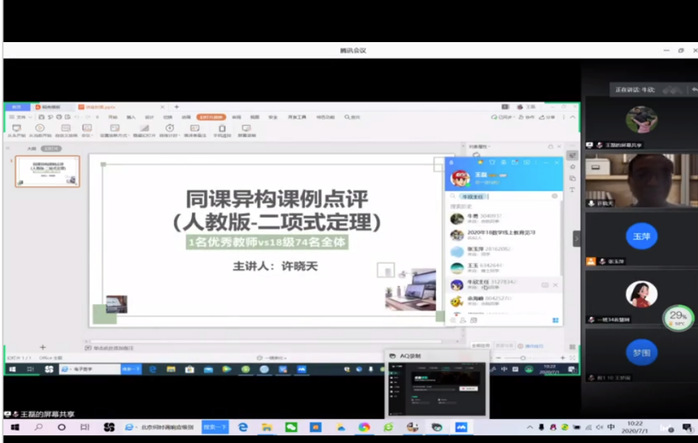 在7月1日聽了合肥市教育局正高級特級教師許曉天老師關于“二項式定理”的課例分析后,18數學湯慶君同學感慨:“首先非常榮幸能夠被許老師點評課程,聽了許老師的講解之后我清楚地認識到了自己上課中的不足,也對其他同學的優(yōu)點更加清晰。老師果然是數學屆的泰斗,說話不拖泥帶水,一擊即中,特別在回答我們提問的問題時,非常明確,有效解決了我的一些困惑……”。