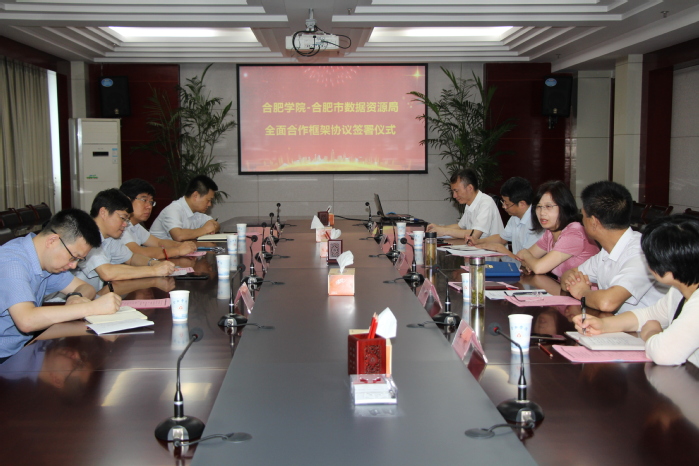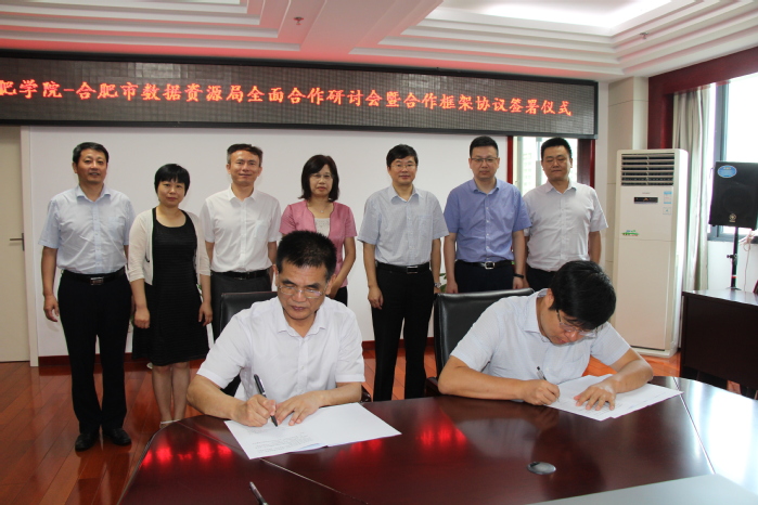 以研討的成果為基本框架,雙方達(dá)成了全面合作框架協(xié)議,陳睿和盧平分別代表雙方簽署了合肥學(xué)院—合肥市數(shù)據(jù)資源局全面合作框架協(xié)議。