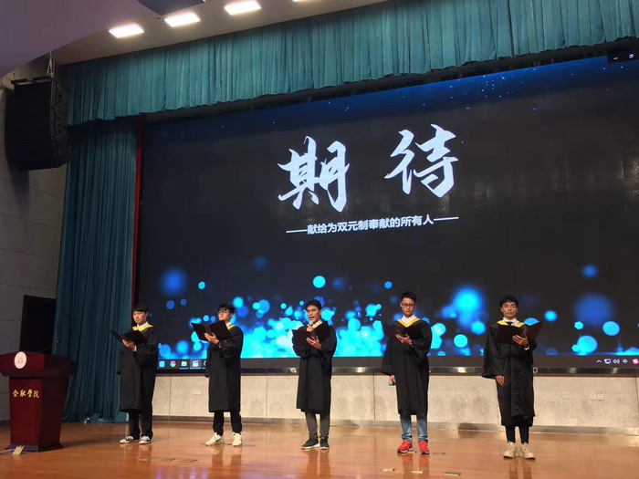 王佩剛還對(duì)大陸班畢業(yè)生們表達(dá)了期望與祝福:成功的路上向來沒有童話,成功是一步一個(gè)腳印踏踏實(shí)實(shí)地走出來的。習(xí)近平主席在同各界優(yōu)秀青年代表座談時(shí)講到的“有多大擔(dān)當(dāng),才能干多大事業(yè),盡多大責(zé)任,才會(huì)有多大成就”。我們的國家,我們的民族,從積貧積弱一步一步走到今天的發(fā)展繁榮,靠的就是一代又一代人的勇于擔(dān)當(dāng),靠的就是中華民族生生不息的強(qiáng)烈責(zé)任感。合肥學(xué)院被譽(yù)為中國高等教育改革的小崗村、新建本科院校的排頭兵,正是因?yàn)楹戏蕦W(xué)院人具有敢為天下先的社會(huì)責(zé)任與擔(dān)當(dāng)精神。今天,作為合肥學(xué)院的畢業(yè)生,希望同學(xué)們要薪火相傳,在星辰大海的征途中,心有所屬,行有所善,用目標(biāo)和理想來引領(lǐng)人生規(guī)劃,為現(xiàn)代化五大發(fā)展美好安徽做出貢獻(xiàn),為實(shí)現(xiàn)中華民族偉大復(fù)興的中國夢(mèng)做出貢獻(xiàn)!