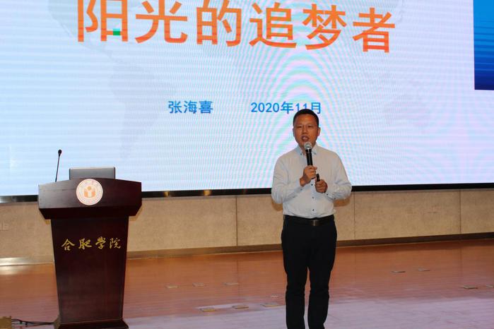 11月12日下午,由大學(xué)生創(chuàng)新創(chuàng)業(yè)教育中心、能源材料與化工學(xué)院和共青團(tuán)合肥學(xué)院委員會(huì)共同舉辦的“校慶校友第二期創(chuàng)業(yè)講座——陽(yáng)光的追夢(mèng)者”在圖書(shū)館報(bào)告廳A廳舉行,我校2009屆材化學(xué)院粉體專業(yè)畢業(yè)校友張海喜受邀分享創(chuàng)業(yè)歷程。能源材料與化工學(xué)院黨委書(shū)記童玉松、院長(zhǎng)董強(qiáng)參加了創(chuàng)業(yè)講座,講座由大學(xué)生創(chuàng)新創(chuàng)業(yè)教育中心主任劉沛平主持。