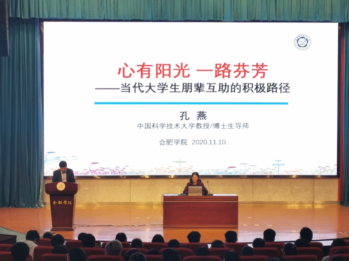 此次報告會主題為“心有陽光,一路芬芳——當代大學(xué)生朋輩互助的積極路徑”,會上,孔燕將心理工作理論與大學(xué)生的實際生活相結(jié)合,討論了大學(xué)生常見的心理困惑,解釋了朋輩互助的涵義,強調(diào)了“成長型思維”、“堅毅”、“自信”、“利他”等重要品質(zhì),給同學(xué)們傳遞了正能量。在討論環(huán)節(jié),同學(xué)們積極提問發(fā)言,孔教授一一給予解答,現(xiàn)場氣氛歡樂融洽。