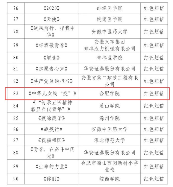 日前,安徽省委組織部、共青團安徽省委、安徽省學生聯(lián)合會公布了《安徽省疫情防控和決戰(zhàn)決勝脫貧攻堅紅色信息征集活動獲獎名單》,我校先進制造工程學院學生工作辦公室主任耿俁老師的作品《中華兒女戰(zhàn)“疫”》(詩歌)榮獲二等獎。