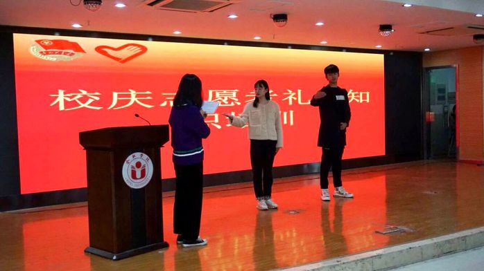 青年志愿者聯(lián)合會趙可欣同學(xué)向全體志愿者詳細(xì)介紹了我校校情校史。接著優(yōu)秀志愿者代表交流分享了志愿服務(wù)的心得和經(jīng)驗(yàn),他們認(rèn)為,志愿活動(dòng)的歷練是人生寶貴的財(cái)富,希望各位校慶志愿者們能互相合作,共同努力,圓滿完成此次任務(wù)。禮儀隊(duì)顧子菡同學(xué)介紹了志愿服務(wù)禮儀常識、待人接物、著裝規(guī)范等內(nèi)容。汪朋對志愿者組織紀(jì)律等進(jìn)行介紹。