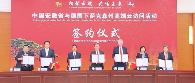 7月16日,安徽省與德國下薩克森州以視頻方式舉行“相聚云端 共話未來—中國安徽省與德國下薩克森州高端云訪問活動(dòng)”。省委書記李錦斌、省長王清憲、下薩克森州州長施特凡·魏爾、副省長章曦、中國駐漢堡總領(lǐng)事杜曉暉、德國駐上海代總領(lǐng)事唐孟思和合肥學(xué)院校長吳春梅等出席活動(dòng)。