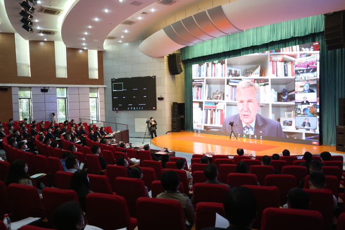 魏爾在致辭中說,37年來,安徽省和下薩克森州一直密切合作,締結了深厚友誼。合肥學院和奧斯納布呂克應用科學大學合作數(shù)十年,中德應用型高等教育研討會正是其中的典范,也是安徽省和下薩克森州友誼的基石。一直以來,良好的協(xié)商和積極的學生交流帶來了無窮益處,非常期待疫情后中德雙方能夠繼續(xù)促進青年學生的互相交流。