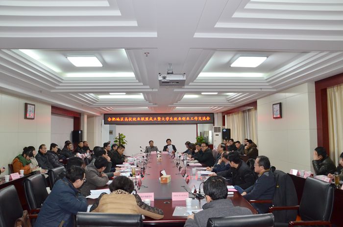 為進一步加強合肥地區(qū)高校就業(yè)創(chuàng)業(yè)工作交流與合作,實現(xiàn)資源共享、優(yōu)勢互補,2015年1月29日下午14點合肥地區(qū)高校就業(yè)聯(lián)盟成立暨大學(xué)生就業(yè)創(chuàng)業(yè)工作交流研討會在合肥學(xué)院隆重舉行。省教育廳學(xué)生處處長左其琨、省人社廳就業(yè)促進處處長劉曉燕、省大中專畢業(yè)生就業(yè)指導(dǎo)中心主任鮑勇、副主任閆明圣以及合肥市人才服務(wù)中心、合肥經(jīng)開區(qū)人才中心、合肥高新區(qū)人才中心、合肥東方英才等應(yīng)邀出席了本次會議;來自合肥地區(qū)48所高校代表、合肥市重點企業(yè)代表等80余人參加了會議。會議由合肥學(xué)院黨委副書記丁明主持。