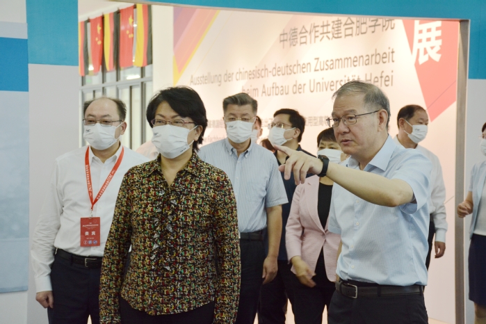 在參觀中德合作共建合肥學(xué)院展的過程中,翁鐵慧一行聽取了王其東對我校建校歷史、教育教學(xué)改革、國際交流合作、產(chǎn)教融合等情況的相關(guān)介紹,翁鐵慧對學(xué)校建校以來堅(jiān)持的“按社會(huì)需求設(shè)置專業(yè)”的做法給予認(rèn)可,肯定了學(xué)校的辦學(xué)定位及高層次應(yīng)用型人才培養(yǎng)取得的成果。