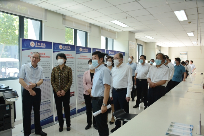 在學(xué)生就業(yè)服務(wù)大廳,翁鐵慧一行深入了解學(xué)?!霸L企拓崗”、“訪地拓崗”、就業(yè)幫扶、就業(yè)數(shù)據(jù)核查等工作開展情況。翁鐵慧對學(xué)校就業(yè)工作取得的成果表示認(rèn)可,要求進(jìn)一步加強(qiáng)就業(yè)數(shù)據(jù)核查,深入落實(shí)“一生一策”幫扶,推動(dòng)畢業(yè)生更加充分更高質(zhì)量就業(yè)。近年來,學(xué)校堅(jiān)持以學(xué)生為中心,打造線上線下學(xué)生社區(qū)服務(wù)平臺,努力為學(xué)生提供流程簡化、便捷高效的服務(wù)?,F(xiàn)場,翁鐵慧肯定了學(xué)?!耙徽臼健睂W(xué)生服務(wù)平臺,希望學(xué)校進(jìn)一步實(shí)現(xiàn)管理智能化、服務(wù)精準(zhǔn)化,賦能大學(xué)生思想教育新生態(tài)。