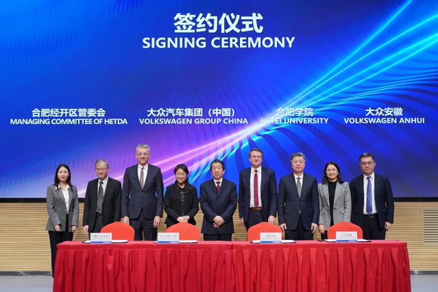 Um die tiefe Integration von Industrie und Bildung, die Zusammenarbeit zwischen den Universit?ten und den Unternehmen sowie ein Vorbild für eine Hochschulkooperation im dualen System zu schaffen, fand am 20. Februar im Innovationspark für chinesisch-deutsche Zusammenarbeit in Hefei die feierliche Unterzeichnungs- und Einweihungszeremonie des Volkswagen-Instituts statt. Jens Pfitzinger, exekutiver Vizepr?sident der Volkswagen Group (China), Erwin Gabardi, CEO von Volkswagen (Anhui) Co., Ltd, Wang Qidong, Sekret?r des Parteikomitees der Universit?t Hefei, Lu Jun, Mitglied des St?ndigen Ausschusses des Parteikomitees der Stadt Hefei, und Chu Changlian, Mitglied des Arbeitsausschusses für Bildung des Parteikomitees der Provinz und stellvertretender Direktor der Bildungsabteilung der Provinz Anhui, nahmen daran teil und hielten Reden. Die Einweihung wurde von Wu Chunmei, Pr?sidentin der Universit?t Hefei, moderiert.