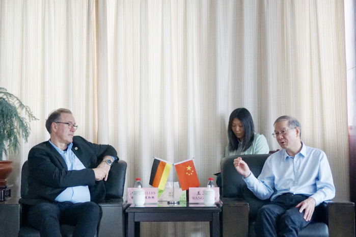 王其東對(duì)萊勒斯的來(lái)訪表示熱烈歡迎,他詳細(xì)介紹了學(xué)校近三年來(lái)在學(xué)科建設(shè)及專(zhuān)業(yè)發(fā)展方面的進(jìn)展,希望學(xué)校與羅斯托克大學(xué)在生物質(zhì)利用及研究領(lǐng)域的合作能做實(shí)做強(qiáng)。