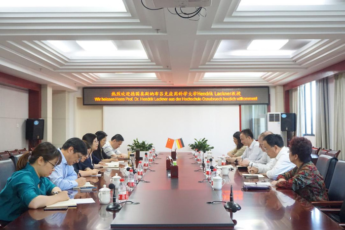 王其東歡迎拉克勒教授來校工作,對(duì)拉克勒教授持續(xù)推進(jìn)學(xué)校與奧斯納布呂克應(yīng)用科學(xué)大學(xué)的合作表示感謝。近年來,兩校高規(guī)格舉辦三屆中德應(yīng)用型高等教育研討會(huì)、成功申報(bào)新的中外合作辦學(xué)專業(yè),雙方教育交流與合作不斷深化。