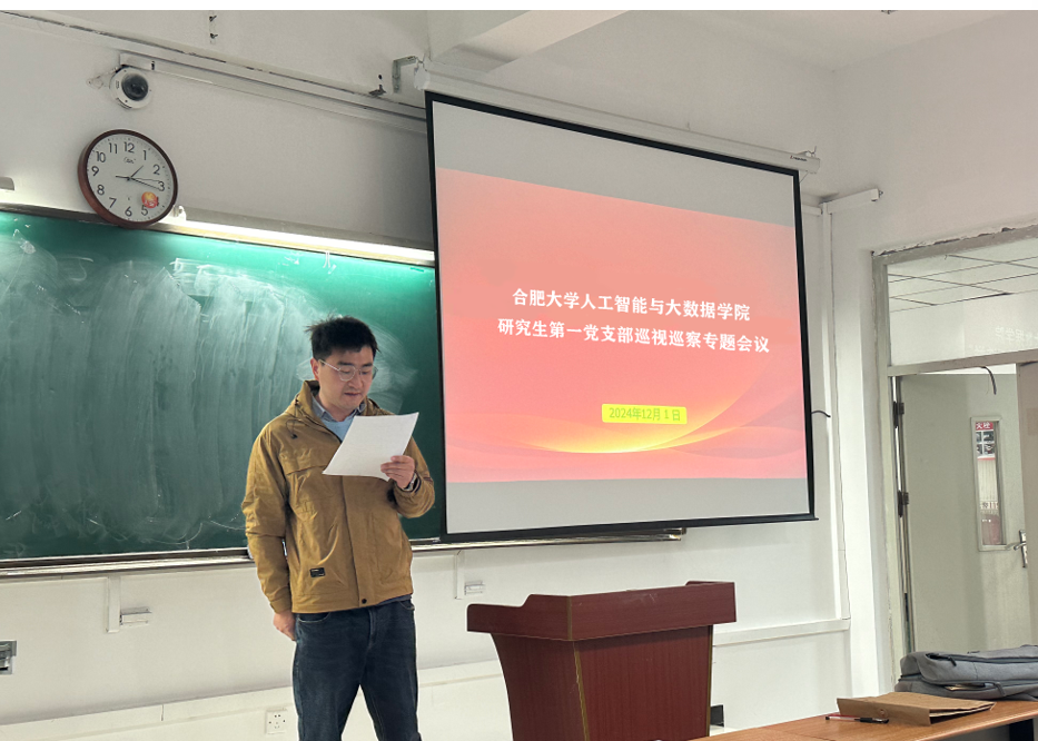 2024年12月1日下午,人工智能與大數據學院研究生第一黨支部在36棟210教室開展了巡視巡察專題學習,此次活動旨在深入貫徹習近平總書記關于巡視工作的重要指示精神,扎實做好研究生第一黨支部巡視巡察工作,以有力有效政治巡視促進黨支部高質量發(fā)展。