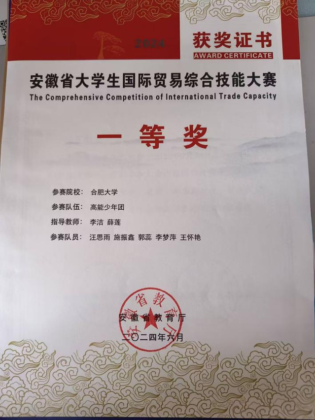 “千萬(wàn)擊還堅(jiān)勁,任爾東西南北風(fēng)?!崩顗?mèng)萍深明大學(xué)時(shí)光蘊(yùn)含的無(wú)限可能,為磨礪自我,她踴躍投身學(xué)科競(jìng)賽。其中令她銘記于心的經(jīng)歷,便是大二期間,她滿懷著對(duì)國(guó)際貿(mào)易領(lǐng)域的憧憬與好奇,毅然決然報(bào)名參加了安徽省大學(xué)生國(guó)際貿(mào)易大賽。在備賽的日子里,她與團(tuán)隊(duì)成員們?nèi)找共惠z,查閱海量資料,深入了解國(guó)際貿(mào)易大賽與規(guī)則,精心策劃方案,反復(fù)演練表演技巧。比賽當(dāng)日,面對(duì)眾多有備而來(lái)的對(duì)手,經(jīng)過(guò)多輪激烈角逐,最終團(tuán)隊(duì)成功斬獲省一等獎(jiǎng)的殊榮。