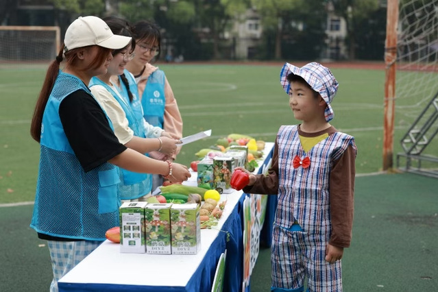 親子互動的“蔬果奧運(yùn)會” 熱鬧非凡,南瓜保齡球、玉米接力賽等項(xiàng)目,讓家長與孩子攜手在歡樂中競技,獲勝者可兌換環(huán)保小禮物,既增進(jìn)了親子關(guān)系,又激發(fā)了大家參與環(huán)保的熱情?!芭f物大變身” 區(qū)域,學(xué)生黨員帶領(lǐng)大家將舊衣服改造成帆布袋、編織地墊,讓廢舊物品煥發(fā)新生,生動詮釋了循環(huán)利用的環(huán)保理念。