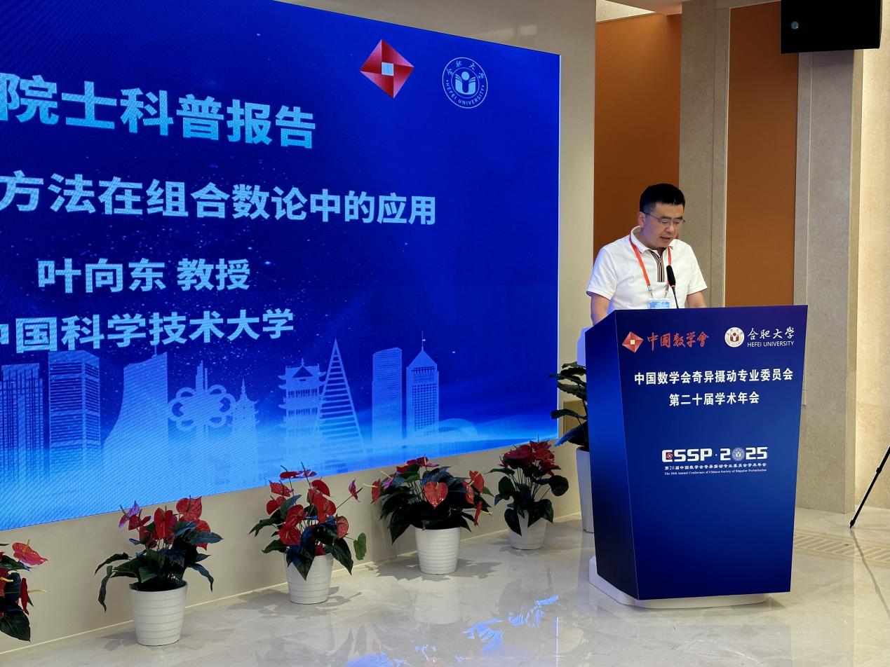 葉向東院士長期從事基礎(chǔ)數(shù)學(xué)中拓?fù)鋭恿ο到y(tǒng)、遍歷理論以及它們在組合數(shù)論中應(yīng)用相關(guān)的研究,取得了一系列令人矚目的成果。報告會上,葉向東院士介紹了動力系統(tǒng)學(xué)科的起源與核心概念,重點介紹了該領(lǐng)域方法與組合數(shù)論問題結(jié)合所取得的突破,展示了運用動力系統(tǒng)方法解決組合數(shù)論難題的最新研究成果,體現(xiàn)了交叉研究的強大生命力。整場報告會展現(xiàn)出高度的學(xué)術(shù)專業(yè)水準(zhǔn),現(xiàn)場氣氛熱烈。報告最后,葉院士寄語天元數(shù)學(xué)講習(xí)班學(xué)員,希望大家甘于坐冷板凳,潛心研究。