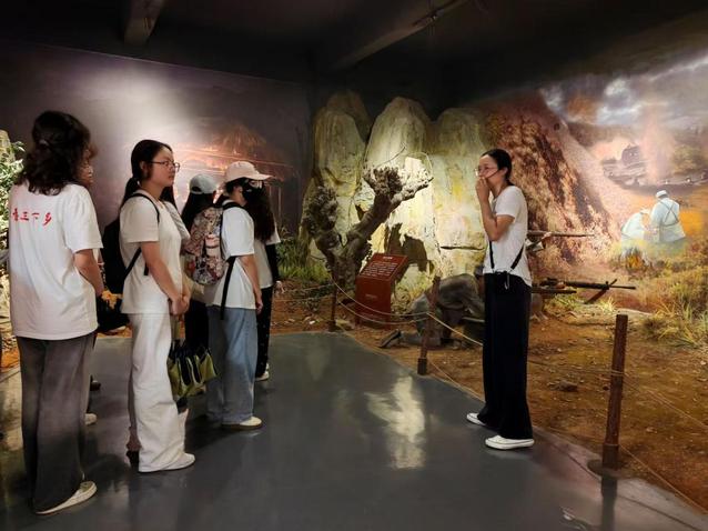 在講解員的帶領(lǐng)下實(shí)踐團(tuán)隊成員們依次參觀了紀(jì)念碑、紀(jì)念館、烈士墓區(qū)等場所。成員們認(rèn)真聆聽?wèi)?zhàn)爭中七千健兒在東進(jìn)抗日卻遭受陰謀的沉痛過往和突圍將士們在絕境中堅守信仰、浴火成長的英雄事跡。成員們駐足在展柜前閱讀泛黃的文獻(xiàn)、銹跡斑斑的武器和珍貴的歷史照片,深切感受著革命先烈們面對生死考驗(yàn)時的無畏與忠誠。