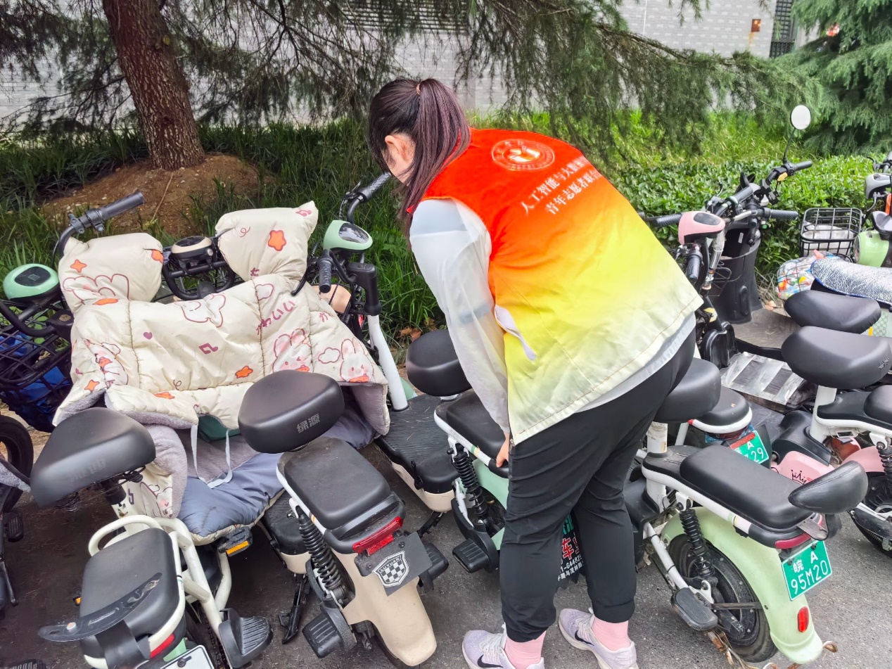 與此同時,志愿者們還投身于電動車規(guī)范停車的活動中。他們忙碌于校園內(nèi)的停車區(qū)域,對亂停亂放的電動車進行細致的整理和擺放。在志愿者們的辛勤付出下,校園道路變得更加寬敞整潔,為師生們營造了更加舒適、安全的校園環(huán)境。