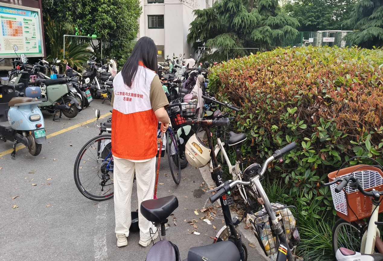 在桂苑和蘭苑這兩個宿舍區(qū),志愿者們用掃帚等工具清理地面上的樹葉、紙張等垃圾,并整理未擺放整齊的車輛。即使是下雨天,雨后志愿者們也會戴上手套清理難以除去的垃圾。他們認真負責,完美詮釋了勞動精神,是校園里一道獨特靚麗的風景線。