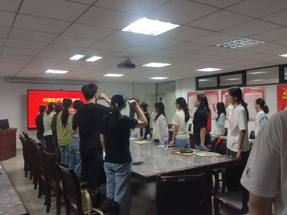 觀影結(jié)束后,黨支部組織全體黨員重溫入黨誓詞。在鮮紅的黨旗下,黨員們緊握右拳,莊嚴宣誓:“我志愿加入中國共產(chǎn)黨,擁護黨的綱領(lǐng),遵守黨的章程……”鏗鏘有力的誓言在會議室回蕩,不僅是對黨的忠誠表白,更是對自我要求的又一次升華。