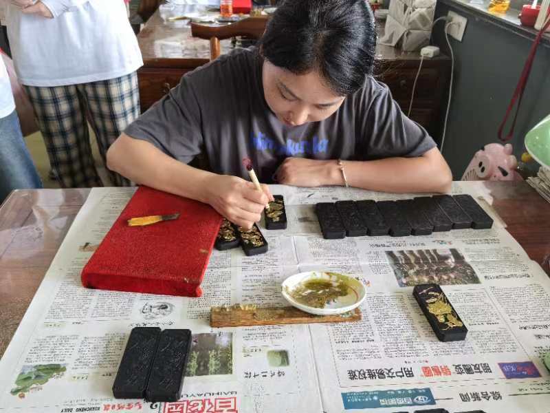 在這里,我們深入了解徽墨從選材到成品的每一道工序,親手體驗制墨的精湛技藝,感受傳統(tǒng)手工藝人的執(zhí)著與堅持。視頻組的同學(xué)利用相機(jī)記錄下徽墨制作的全過程,從煉煙的細(xì)膩,到和膠的精準(zhǔn),再到杵搗的辛勤,再到銼邊、描金,剪輯成視頻,致力于宣傳匠人的心血與智慧和對于完美的追求與執(zhí)著,也為宣傳和傳承傳統(tǒng)文化。