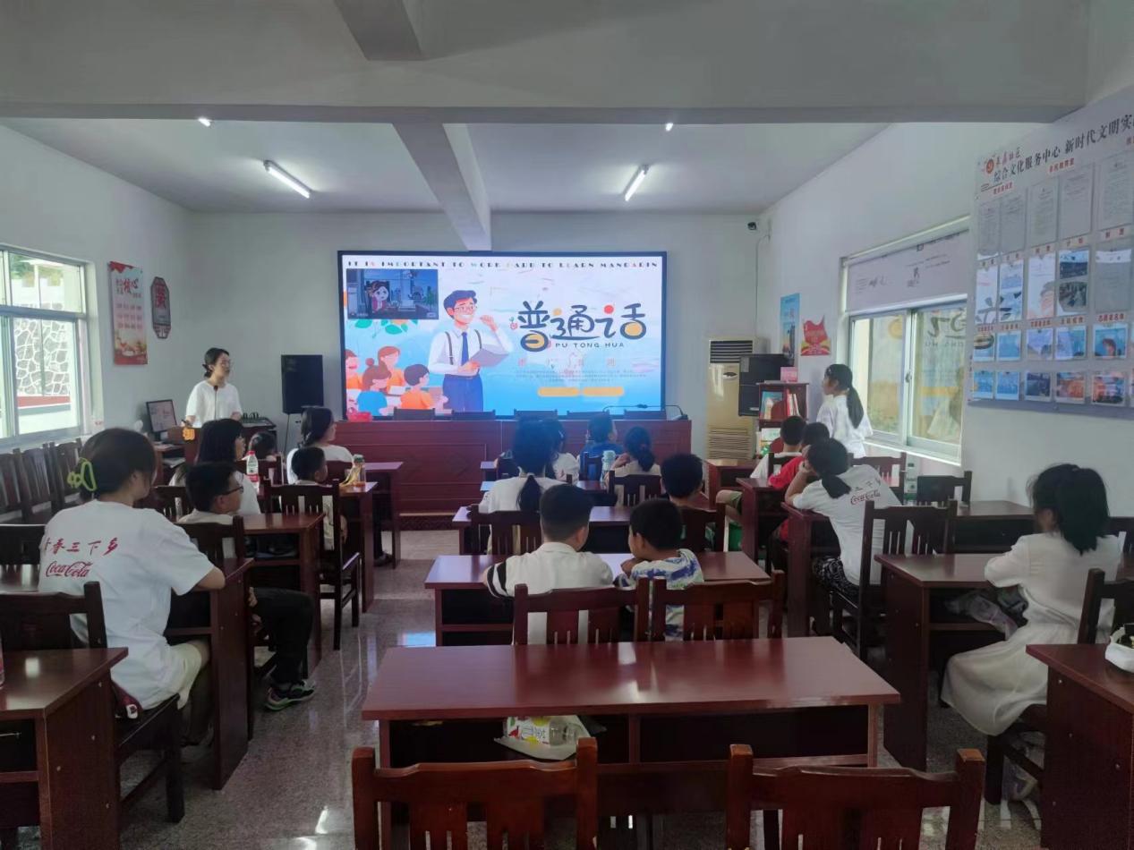 為豐富社區(qū)兒童暑期生活,團(tuán)隊成員去往多個社區(qū),搭建“七彩課堂”教育平臺。7月17日下午,來蘇社區(qū)內(nèi),科普組的同學(xué)發(fā)揮師范類專業(yè)的優(yōu)勢,開展推廣普通話的公益課堂。同學(xué)們通過互動式教學(xué)和有趣的語言游戲,讓小朋友們在輕松愉悅的氛圍中學(xué)習(xí)普通話的重要性。