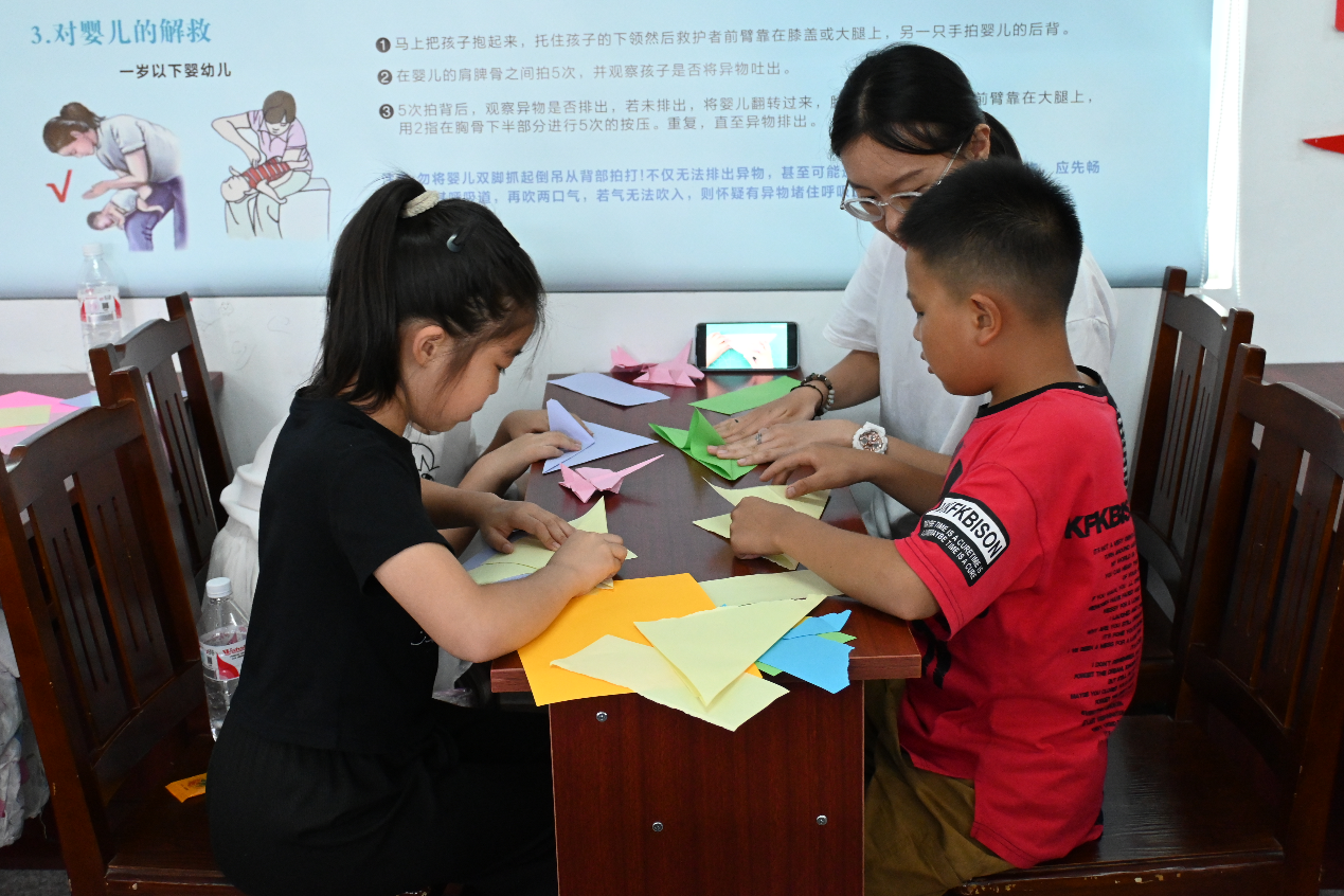 接著就到了有趣的折紙活動。折紙不僅是一種藝術,更是一種能夠鍛煉孩子們耐心與觀察能力的活動。志愿者們耐心地指導每一個孩子,孩子們在折紙的過程中不斷嘗試,當一件作品完成時,他們的臉上洋溢著滿足與自豪的笑容。