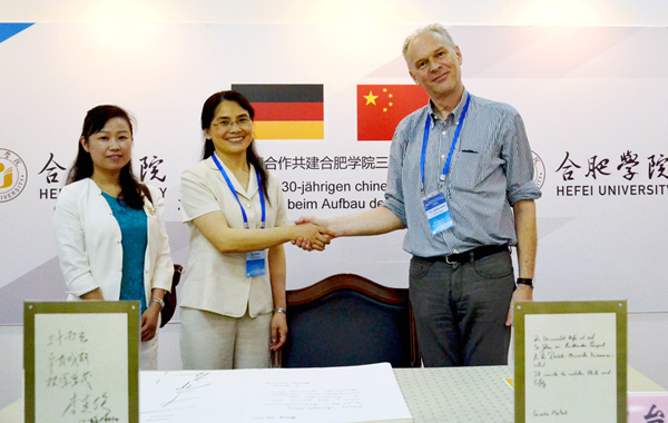 會(huì)上,瓦歇爾教授圍繞“準(zhǔn)穩(wěn)態(tài)”進(jìn)行學(xué)術(shù)報(bào)告,討論了參數(shù)依賴多項(xiàng)式常微分方程模型的化學(xué)反應(yīng)網(wǎng)絡(luò)。在參觀我校中德合作共建三十周年成果展中,他表示,中徳兩國(guó)合作成果豐碩,教育教學(xué)的研究更是卓有成效,合肥學(xué)院三十年的中徳合作歷史尤為重要,為兩國(guó)合作做出重大貢獻(xiàn)。他還指出合肥學(xué)院的發(fā)展日新月異,并希望能夠與合肥學(xué)院繼續(xù)加強(qiáng)交流,加深在學(xué)術(shù)研討方面的探索。
