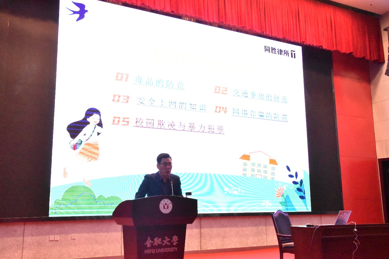 為增強(qiáng)高校大學(xué)生安全意識(shí),普及法律知識(shí),2024 10 17 日中午,合肥大學(xué)先進(jìn)制造工程學(xué)院在圖書館 A 報(bào)告廳舉辦大學(xué)生安全教育主題講座,同勝律師事務(wù)所律師陳西良擔(dān)任主講人,學(xué)院2024級(jí)新生聆聽講座。