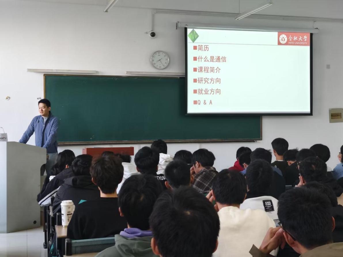 11月12日,專業(yè)邀請(qǐng)杰出校友章恩浩同學(xué)回校給學(xué)生做了專題分享。章恩浩同學(xué)2014年考入合肥大學(xué)通信工程專業(yè),2015年至2017年應(yīng)征入伍,2020年本科畢業(yè)并考入西安電子科技大學(xué)攻讀碩士研究生,2023年碩士研究生畢業(yè),就職于芯思源微電子技術(shù)有限公司。章恩浩同學(xué)首先對(duì)其個(gè)人情況做了簡(jiǎn)要介紹,然后圍繞專業(yè)、就業(yè)、課程體系和考研和工作經(jīng)歷深入交流了經(jīng)驗(yàn),最后提問(wèn)環(huán)節(jié)和同學(xué)互動(dòng)熱烈。