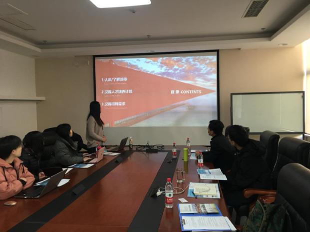 1228日下午,宋書記一行來到上海漢得信息技術(shù)股份有限公司,技術(shù)發(fā)展部副總經(jīng)理謝聲聲女士攜部門成員對宋書記的到來表示了誠摯的歡迎。謝女士為宋書記介紹了漢得公司概況,漢得為中國領(lǐng)先的IT咨詢服務(wù)提供商,擁有八大國內(nèi)基地、三大海外基地、十大參控股公司以及全球化IT服務(wù)能力。與此同時,謝女生還以PPT上圖文并茂的形式展示了漢得的服務(wù)能力框架,發(fā)展歷程以及漢得的部分客戶。在介紹中,謝女士還著重講述了漢得人才培養(yǎng)體系——漢得學(xué)院,她表示,這是為了滿足漢得自身發(fā)展以及企業(yè)輸送多重要求而設(shè)立。在雙方進(jìn)行愉快洽談中,宋書記跟在公司實習(xí)的15級計科系學(xué)生進(jìn)行了親切交流,并向在座人員介紹了我校的基本情況和我系畢業(yè)生的就業(yè)情況,并就認(rèn)知實習(xí)、畢業(yè)實習(xí)的日程安排與公司人員進(jìn)行了商討,最后表達(dá)了對漢得在春招來臨之際前來學(xué)??疾煺\摯的歡迎。謝女士代表公司表現(xiàn)出了濃厚的興趣,希望立即著手實施與我系開啟合作模式,誠邀19屆電子系畢業(yè)實習(xí)生的加盟,共贏未來。