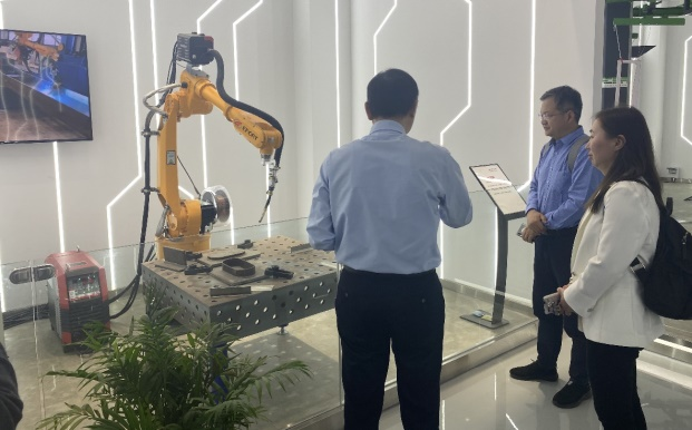 5月20日下午,杜娟書(shū)記帶隊(duì)一行在埃夫特智能裝備股份有限公司工作人員的陪同下參觀調(diào)研了埃夫特智能裝備股份有限公司,張帷總經(jīng)理陪同參觀了公司的展廳,并介紹了公司發(fā)展歷程、機(jī)器人產(chǎn)業(yè)應(yīng)用和跨行業(yè)智能制造解決方案及該公司的人才需求情況。隨后在座談會(huì)上,許禮進(jìn)董事長(zhǎng)對(duì)調(diào)研組的到來(lái)表示熱烈歡迎,并進(jìn)行了雙方產(chǎn)學(xué)研合作進(jìn)行了洽談,重點(diǎn)探討了企業(yè)與學(xué)校的人才培養(yǎng)以及科研合作。