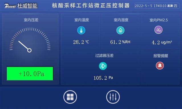 工作站的核心原理是微正壓技術(shù),通過智能控制進(jìn)風(fēng)量,形成微正壓,避免室外污染氣體進(jìn)入室內(nèi)。這看似簡單,但要達(dá)到國家的標(biāo)準(zhǔn),保證小屋內(nèi)空氣的潔凈度,仍需要不斷摸索。高先和團(tuán)隊(duì)按照國家標(biāo)準(zhǔn)對隔離病房的壓差要求,不斷地對小屋內(nèi)壓差控制策略進(jìn)行優(yōu)化,避免過大的壓差造成醫(yī)護(hù)人員的不適。